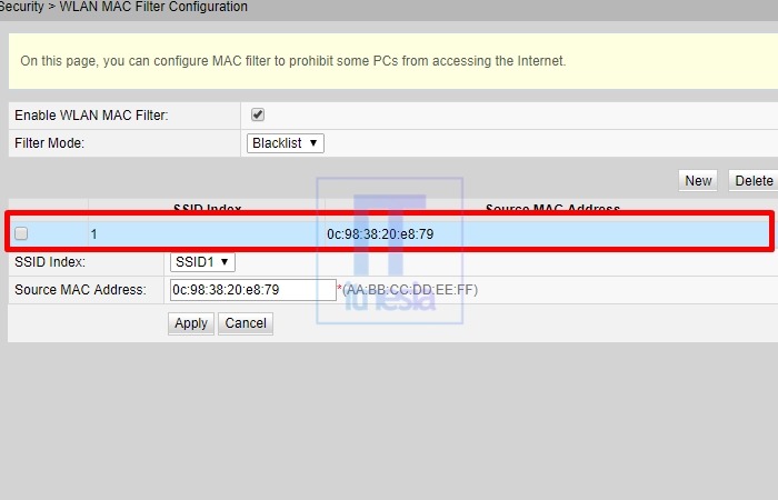 Cara Memblokir Pengguna WiFi (Huawei) - Halaman WLAN MAC Filter Configuration